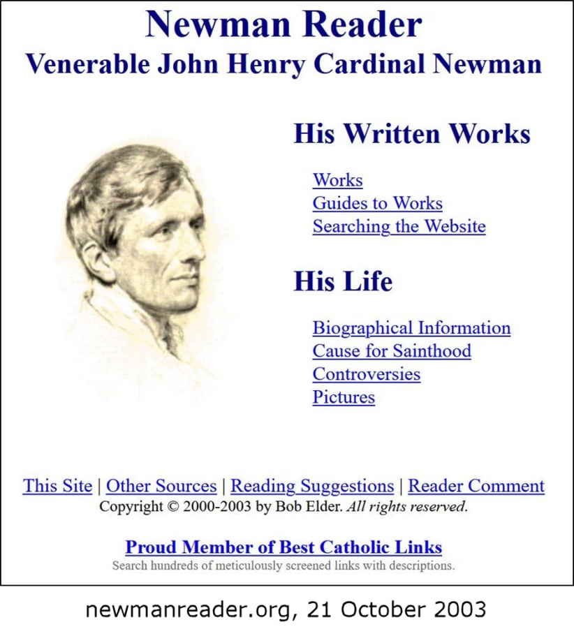 In 1998 I was browsing the religion section of a university library and came upon the complete 40-volume standard edition of Newman's works. I had been studying website development, and at the end of the course the instructor had exhorted us to put something worthwhile on the Internet: I was struck immediately with the idea of making that whole Newman collection available to the Internet world, and to that end launched the